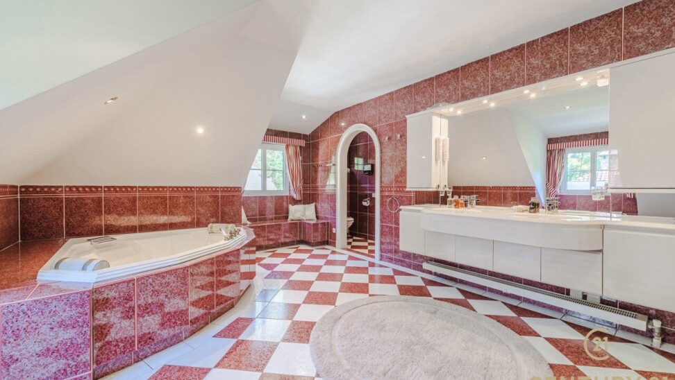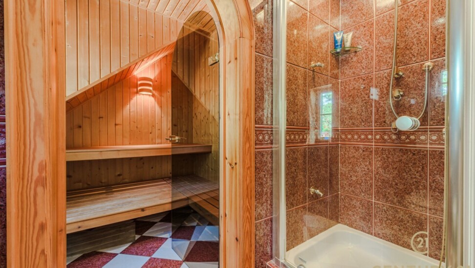 On the second floor are four full-sized bedrooms and three bathrooms. The master bedroom has its own walk-in dressing room, a spacious bathroom as well as a private sauna.