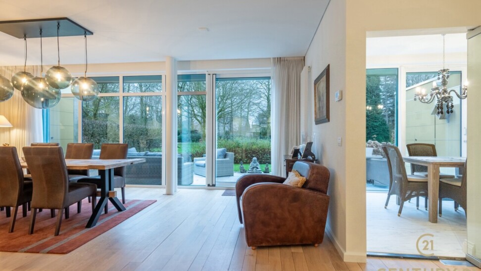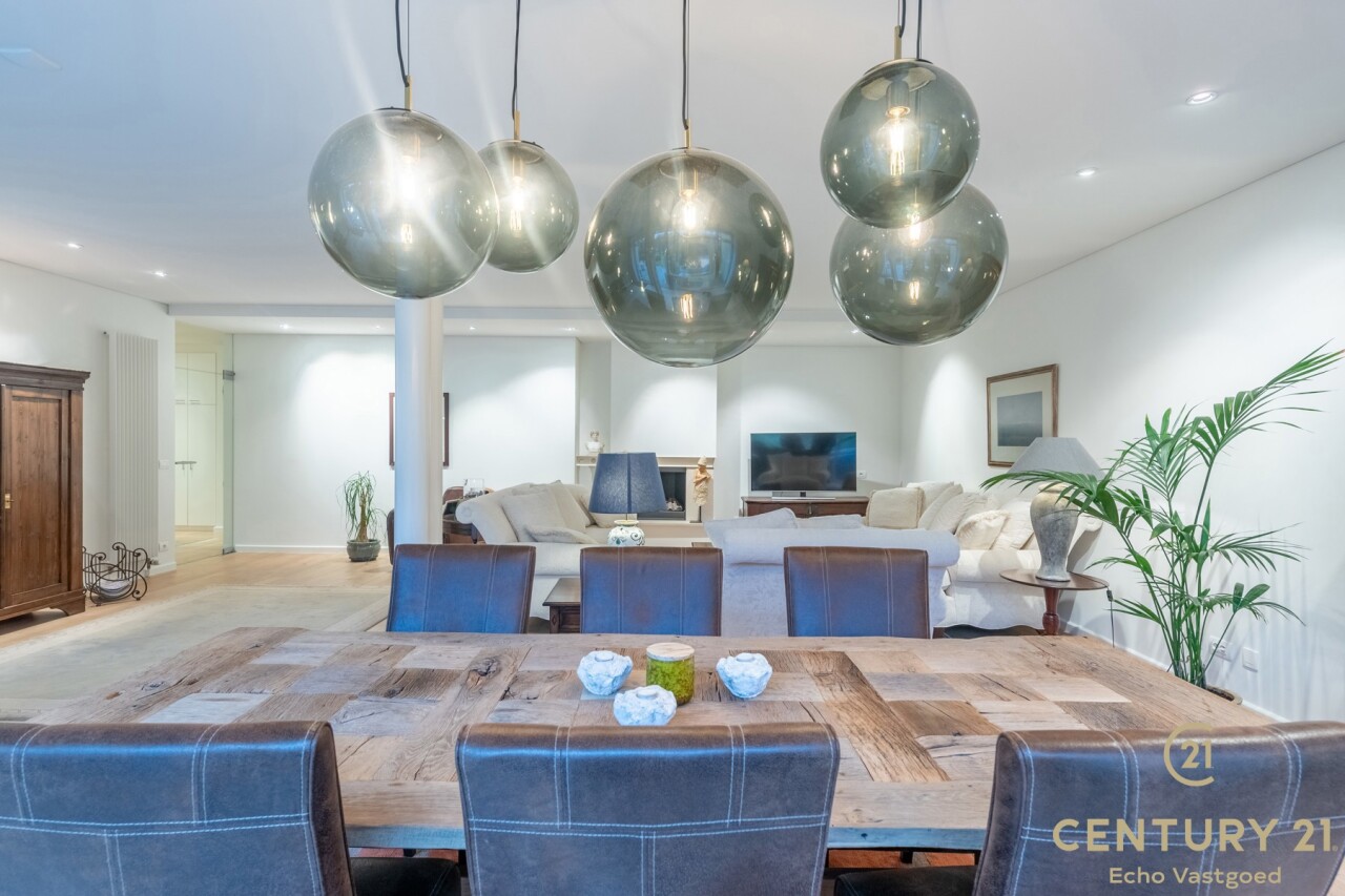 Located in the green and quiet surroundings of Residentie 'De Dennen' in Oud-Turnhout, this ground floor luxury apartment offers an exceptional living experience. You enter the private domain through the entrance on Steenweg op Mol and then drive past a beautifully landscaped park with winding footpaths and idyllic ponds. The building, in which the apartment is located, is surrounded by this green splendor, and from your living room and generous private terrace you will enjoy a breathtaking view of the park.