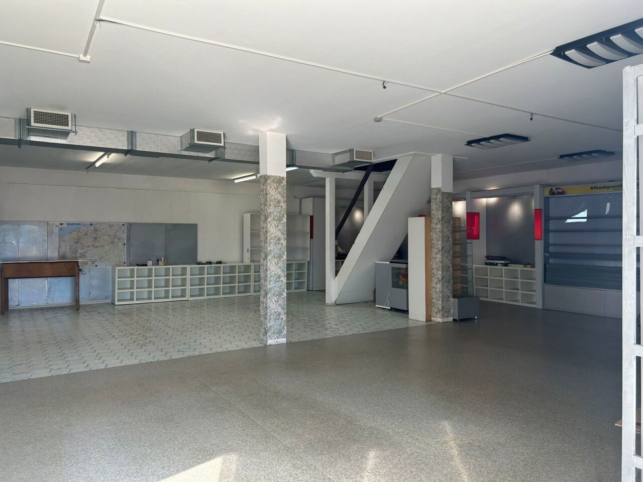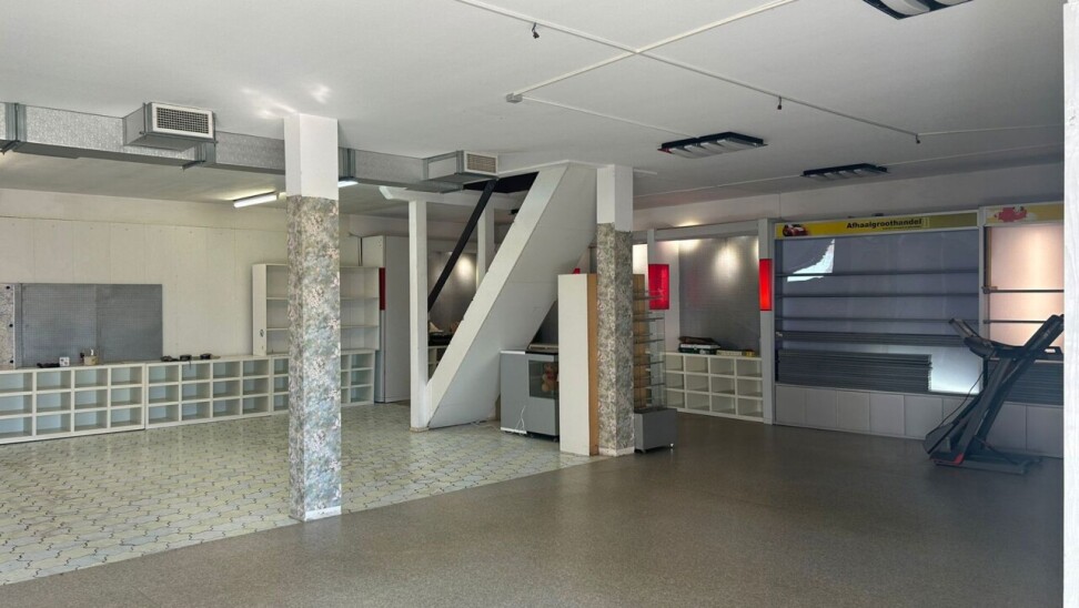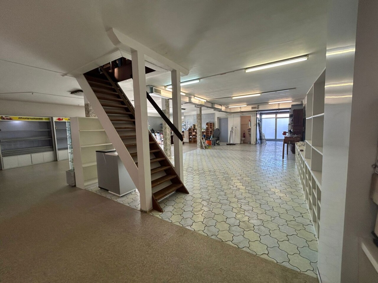 The ground floor space of approximately 140 m² is accessible from two sides, which makes loading and unloading particularly efficient. It is a spacious, open floor that currently still has shop shelving. In addition, there is a toilet on this floor, which makes daily operations even more practical.