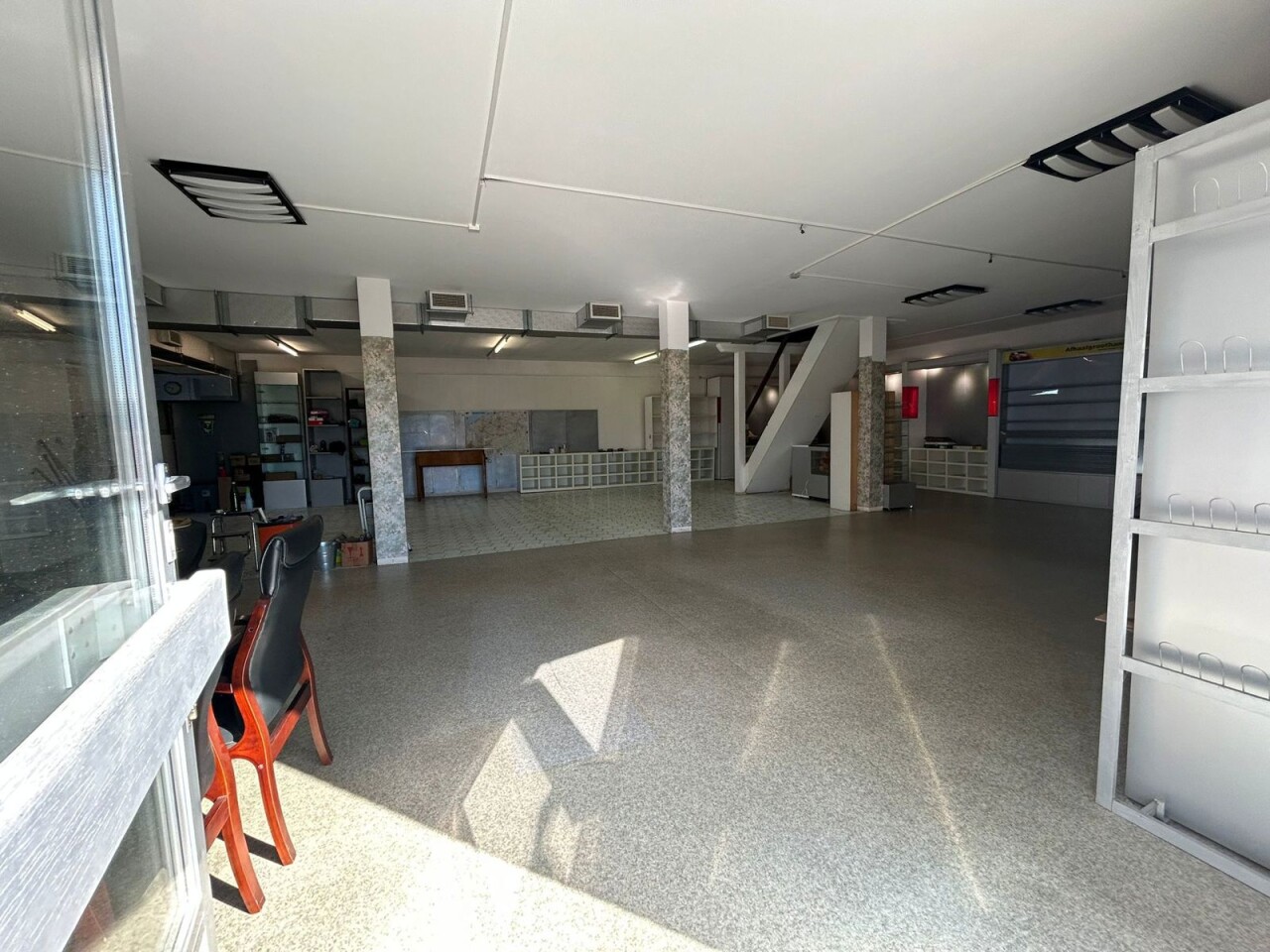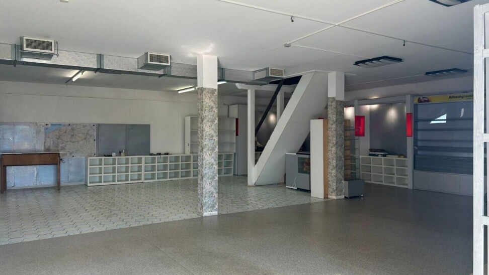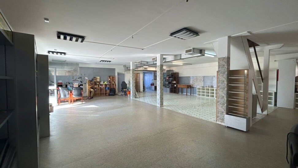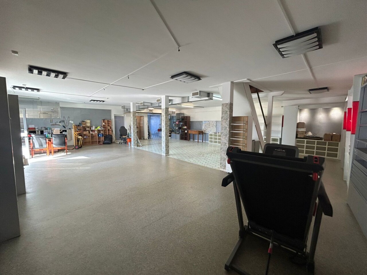 The ground floor space of approximately 140 m² is accessible from two sides, which makes loading and unloading particularly efficient. It is a spacious, open floor that currently still has shop shelving. In addition, there is a toilet on this floor, which makes daily operations even more practical.