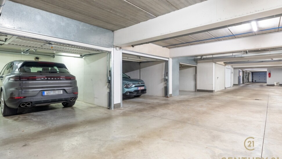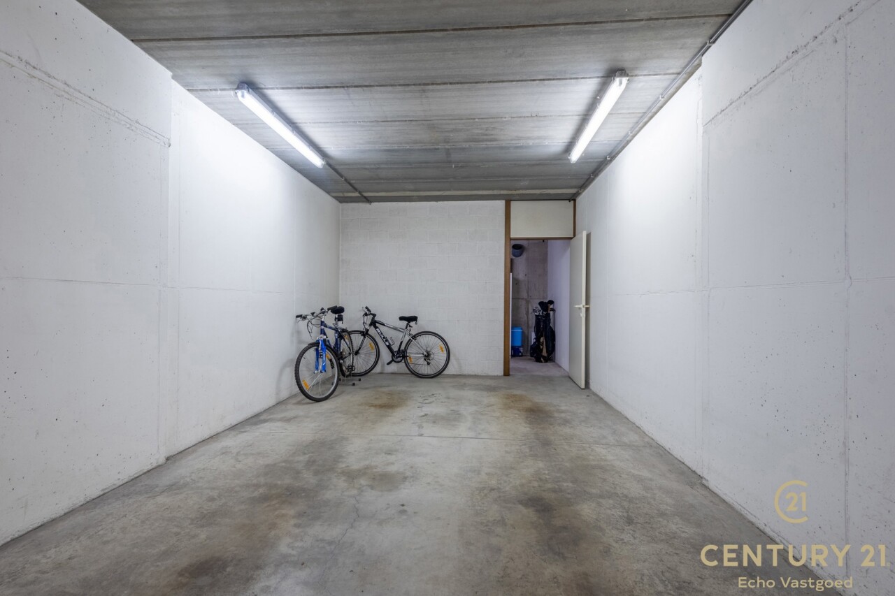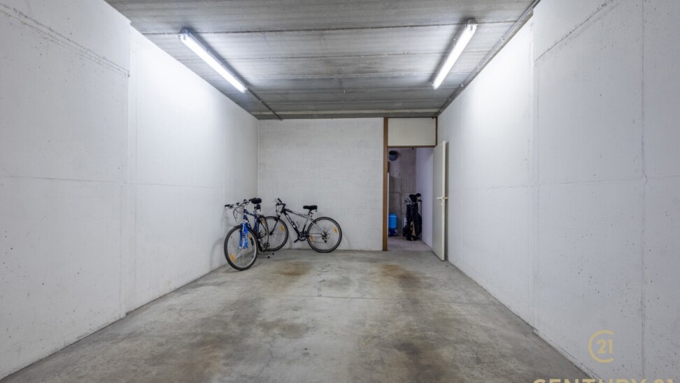 Het grote terras, voorzien van zonneluifel en buitenberging, is de ideale plek om in alle privacy te genieten van de rustige, groene omgeving. Bovendien zijn een gesloten garagebox en een open garagebox met berging verplicht mee aan te kopen voor €42.500.