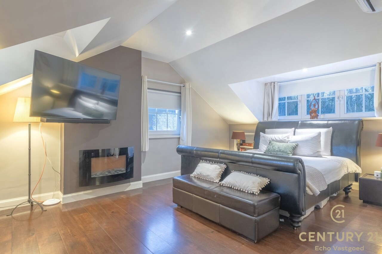 De bovenverdieping herbergt een royale masterbedroom met een eigen luxe badkamer en een handige dressing. Daarnaast zijn er nog drie slaapkamers, die samen een derde badkamer delen.