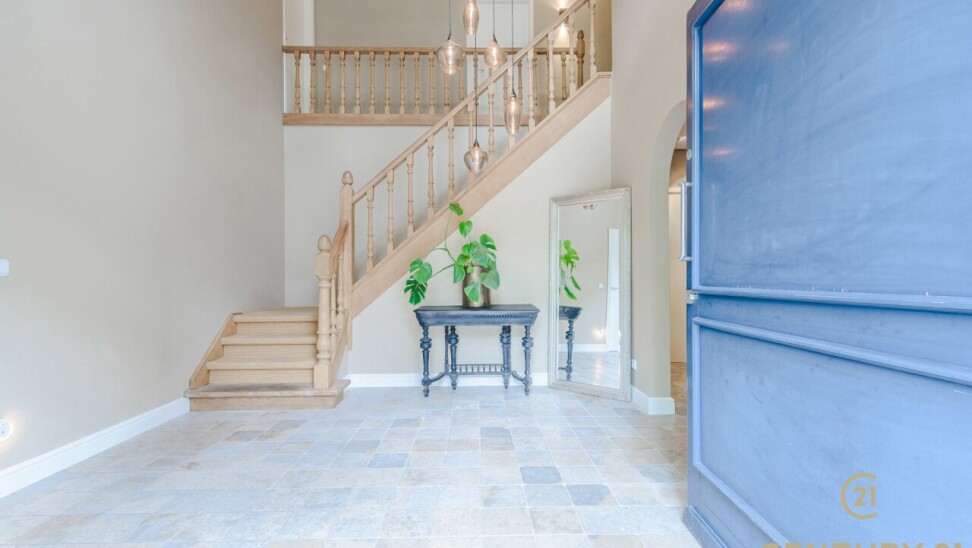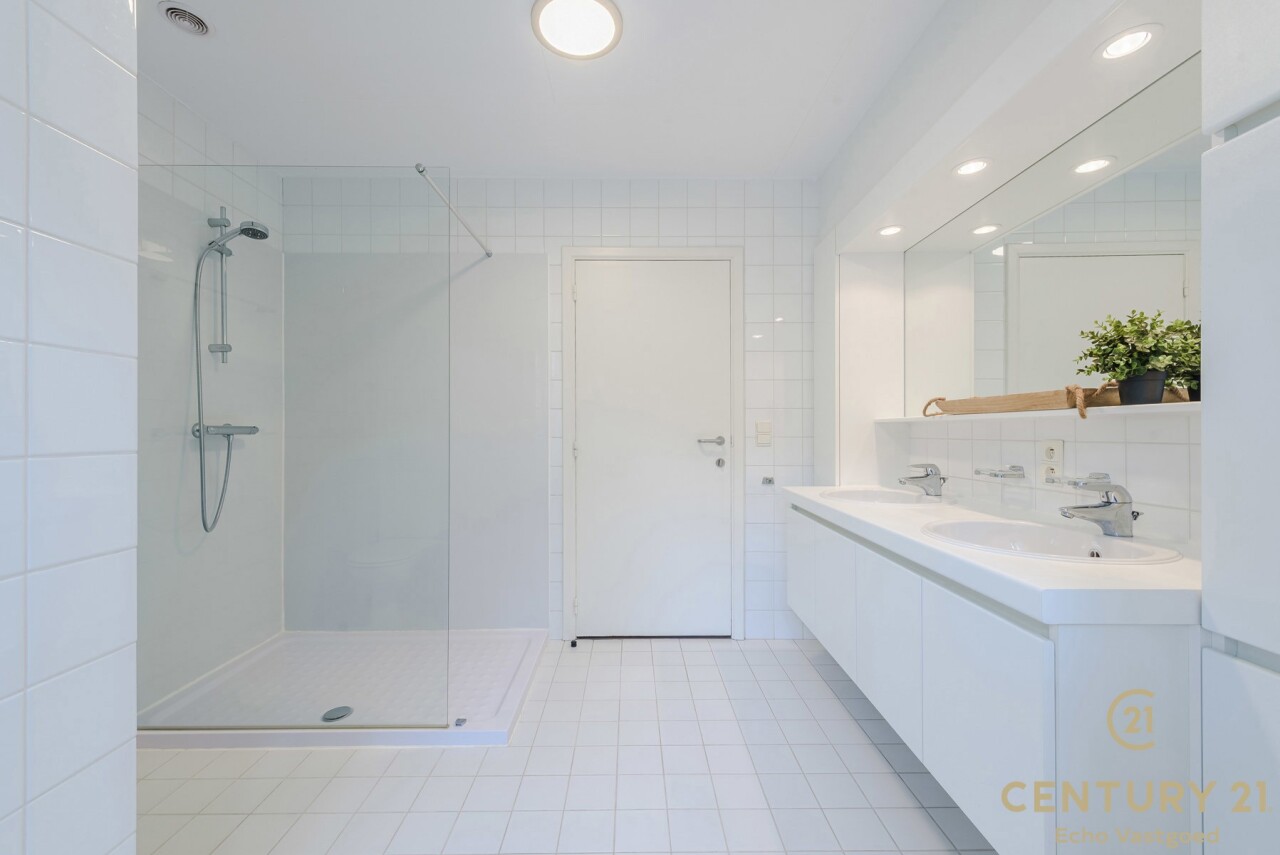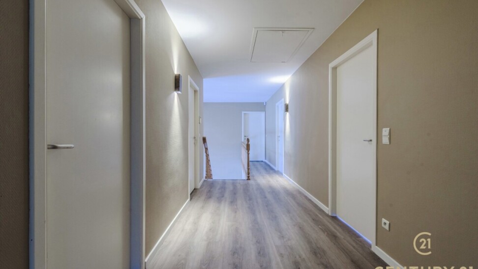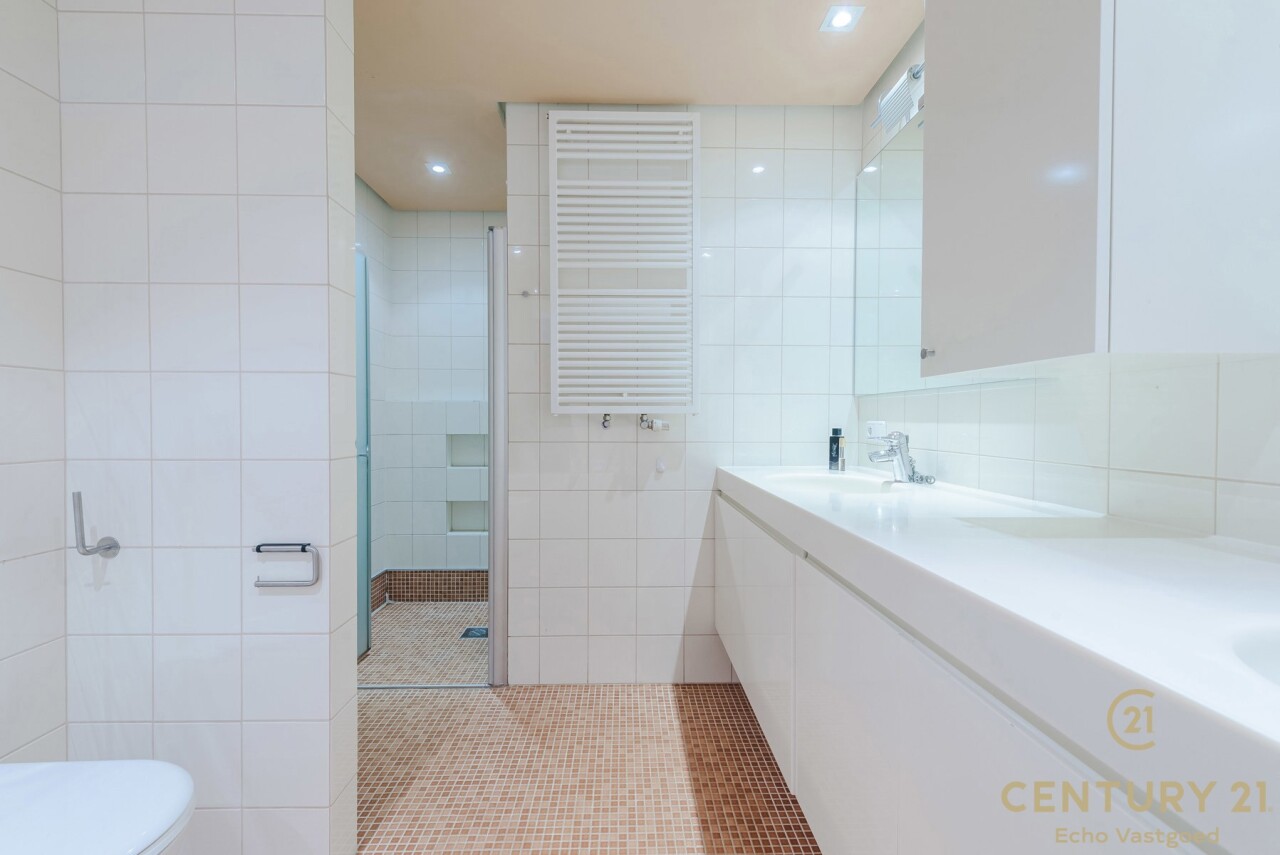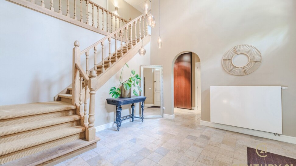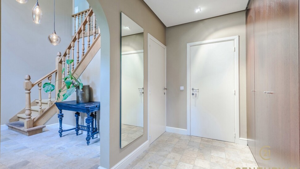 Bij het binnenkomen zet de elegante inkomhal met vestiaire en de stijlvolle trap in natuureik meteen de toon: hoogwaardige afwerking, natuurlijke materialen en een overvloed aan licht en ruimte.