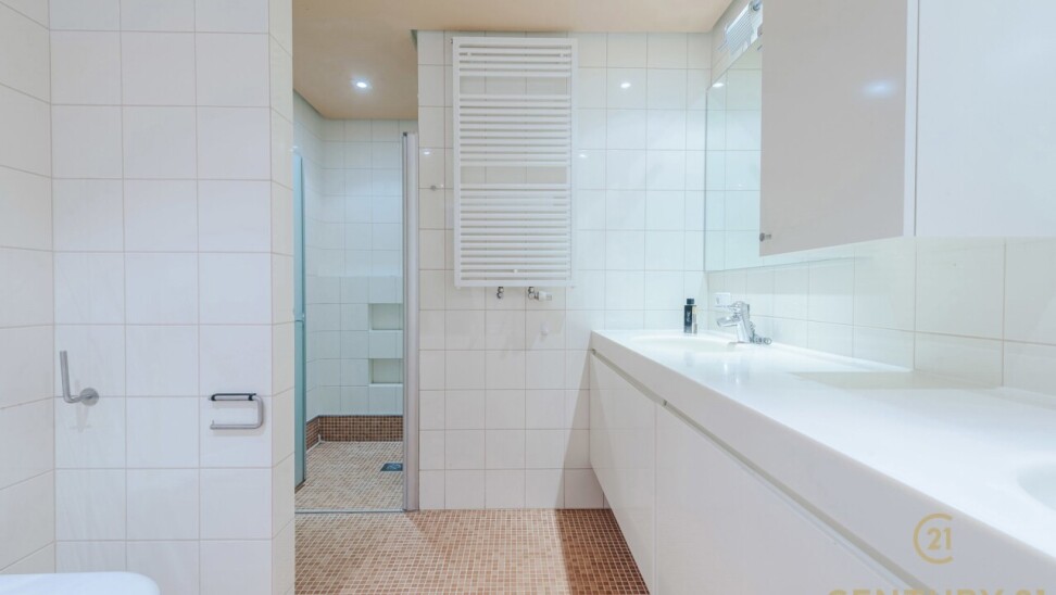 Op de eerste verdieping bevinden zich vier slaapkamers, elk voorzien van ingebouwde kasten. De ruime master bedroom beschikt over een eigen badkamer, terwijl de drie overige slaapkamers een tweede badkamer delen. Verder is er nog een handige berging en een vlizotrap die toegang geeft tot de zolder.