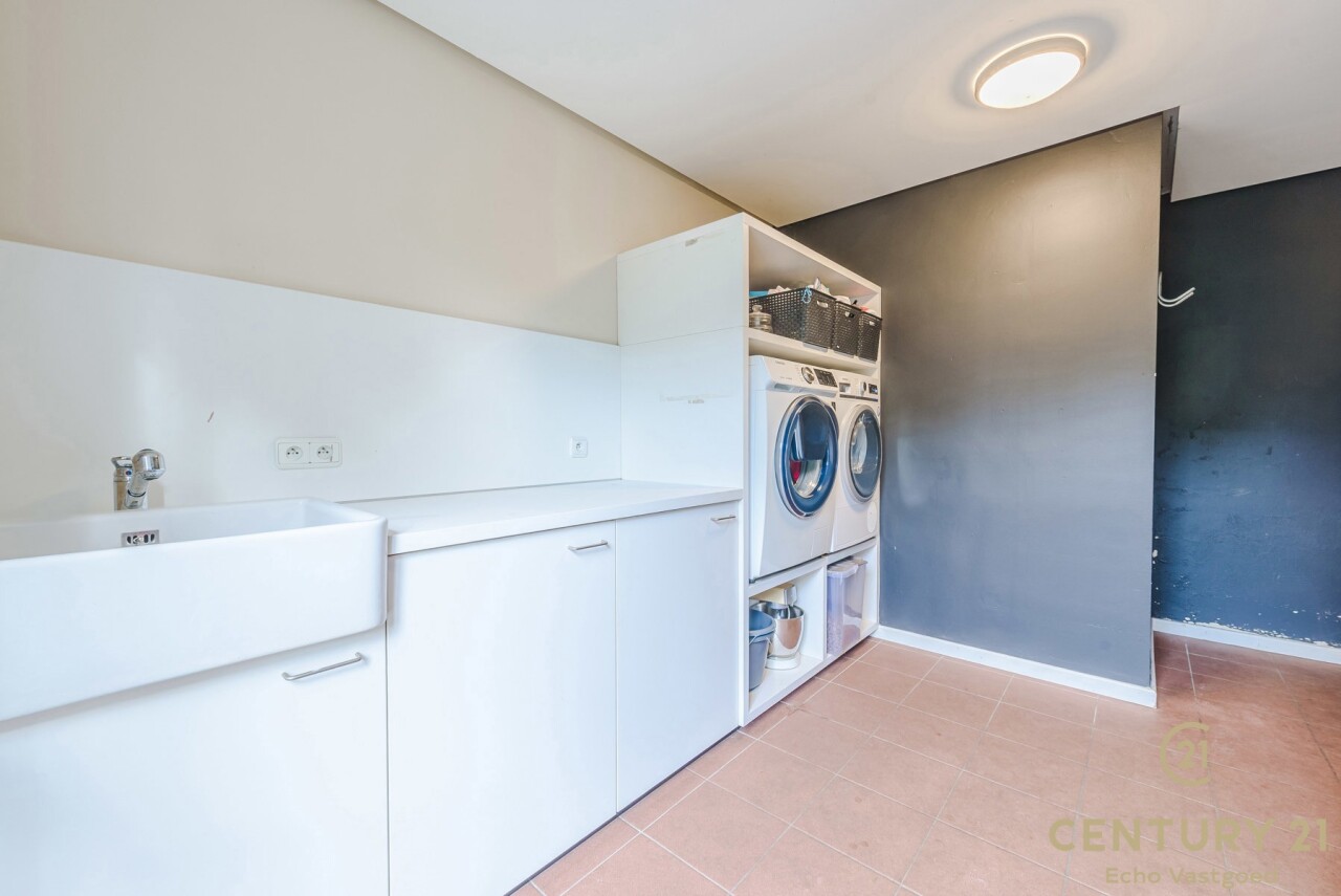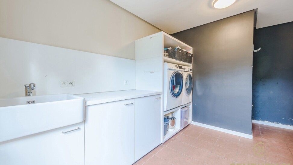 Het gelijkvloers beschikt daarnaast over een praktische bijkeuken met aansluitingen voor wasapparatuur, een droge voorraadkelder, een apart gastentoilet en een veelzijdige ruimte die kan dienen als bureau, leeshoek, fitnessruimte of extra slaapkamer. Aansluitend vindt u hier ook een eerste badkamer.