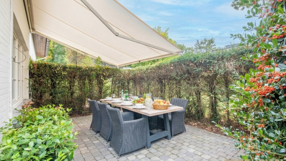 De onderhoudsvriendelijke, volledig omheinde tuin biedt optimale privacy en wordt aangevuld met een ruime carport. Hier geniet u ongestoord van rust, comfort en gezelligheid.
